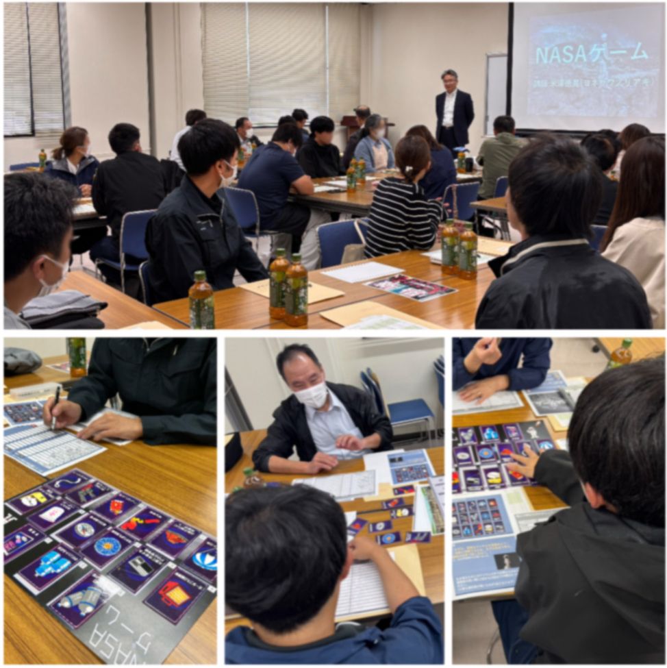 | 2025.10.24 | 【ニュースリリース】全社員研修会を実施しました 本研修は、社員の合意形成能力とコミュニケーション能力の向上を目的として実施されました。 研修の内容には、ビジネスゲームとして広く知られる「NASAゲーム」を導入しました。社員はチームに分かれ、ゲームを通じて課題に取り組みました。 参加者からは、「楽しみながら、合意形成の難しさや、チームでのコミュニケーションの重要性を肌で感じることができた」との声が上がりました。 また、チームでの協働を通じて社員間の新たな交流も生まれ、大変有意義な研修となりました。 今後も、社員一人ひとりの成長と、より円滑な組織運営を目指し、多様な研修機会を提供してまいります。